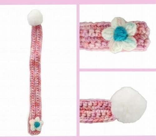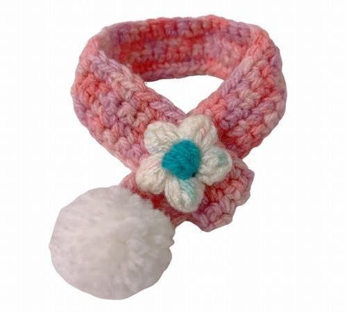 ポンポン&お花がとっても可愛い手編みのマフラーです☆彡