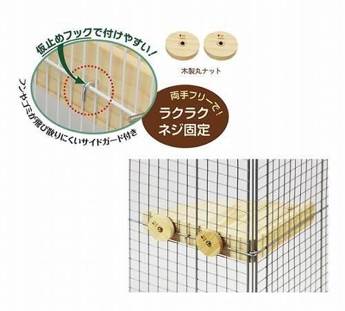 仮止めフックで付けやすく、木製丸ナットで簡単にネジ固定ができます。